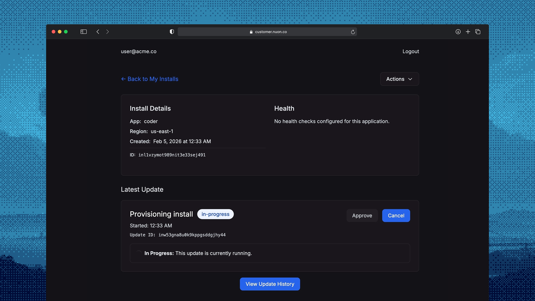 You can use our new customer dashboard at customers.nuon.co to create management portals for your customers.