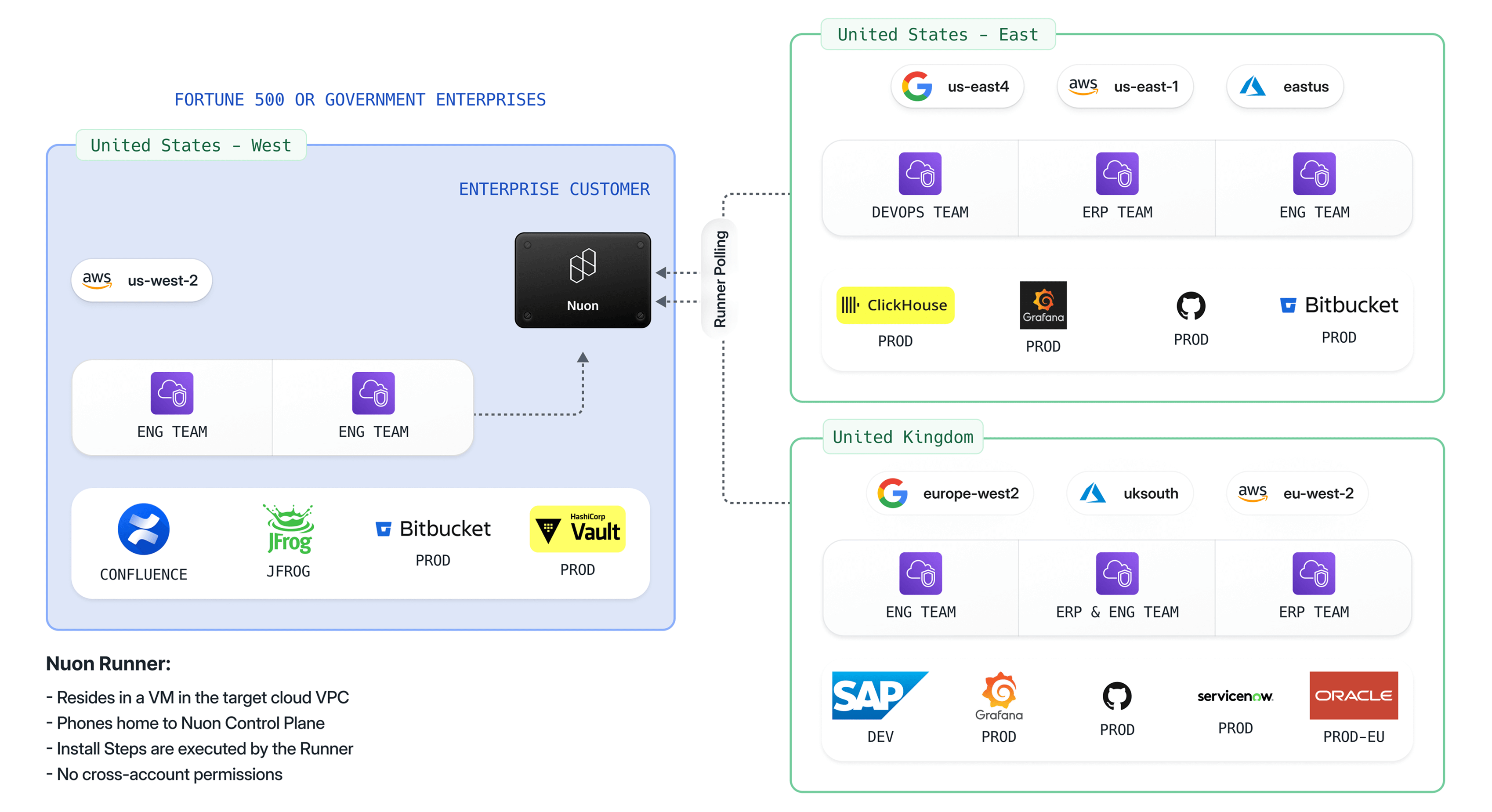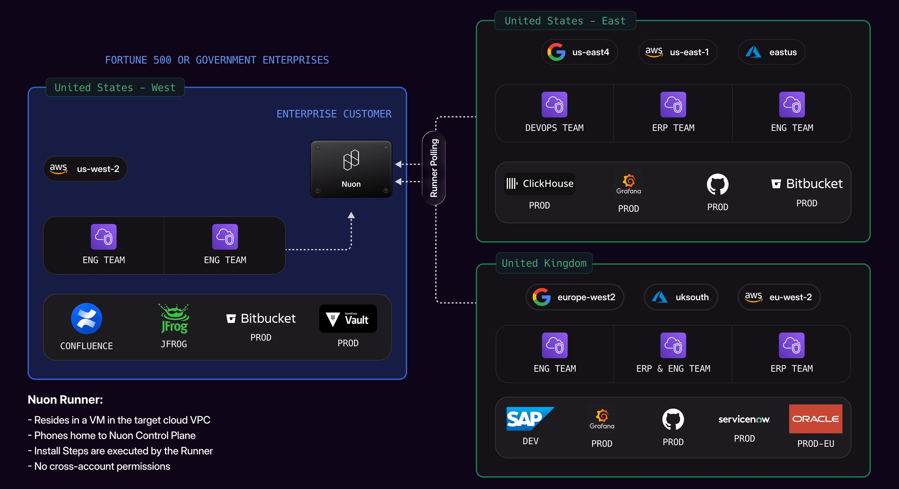 Manage in-house and vendor software apps across AWS, Microsoft Azure, Google Cloud, OCI and IBM Cloud from one control plane with consistent installation, upgrades, and monitoring. Read blog: A Better Form of Self-Hosting: The Enterprise Control Plane Model.