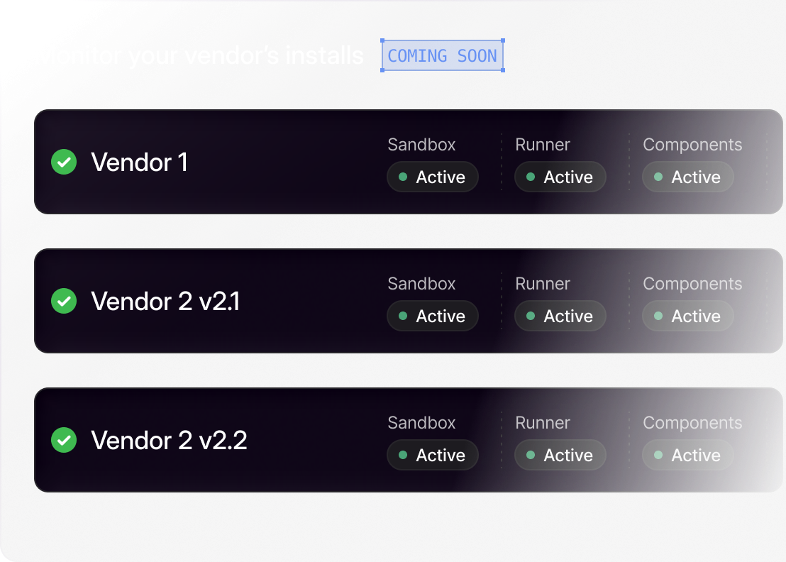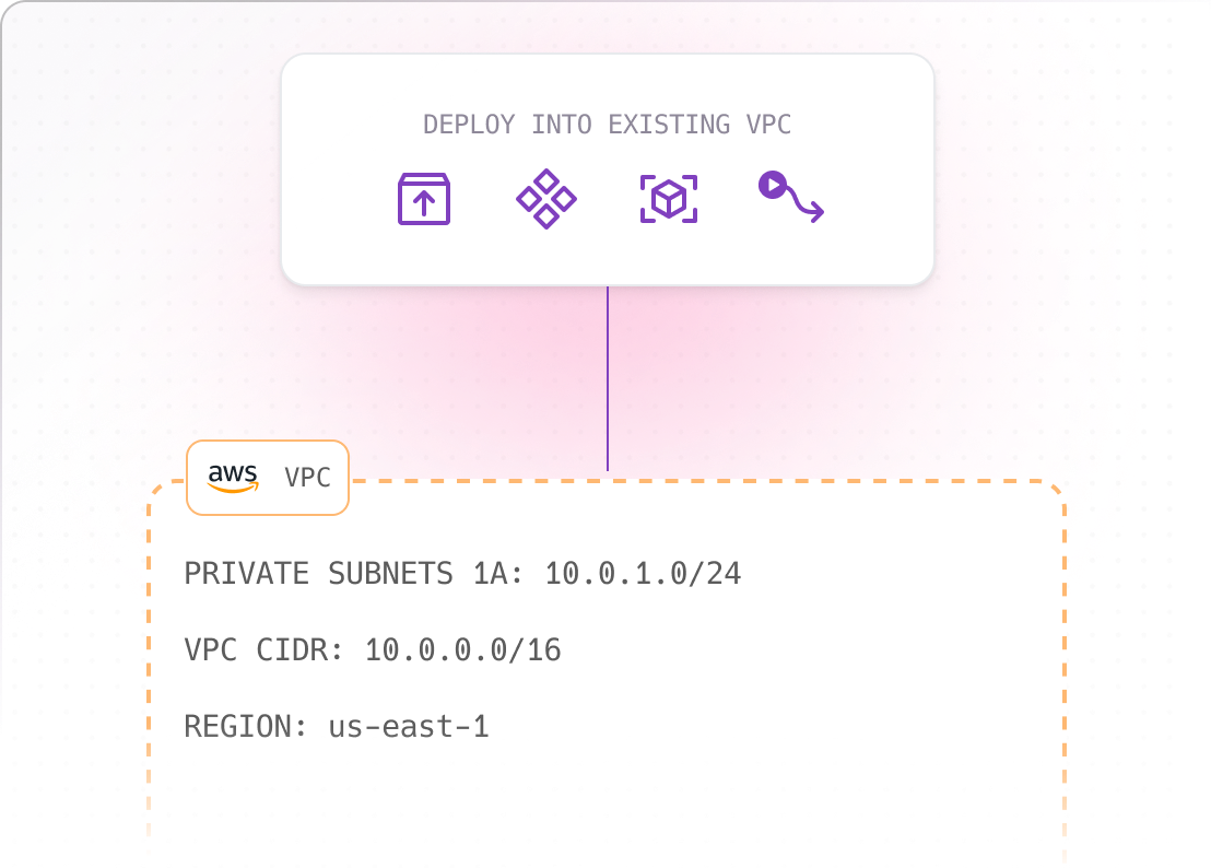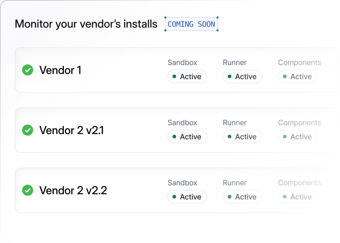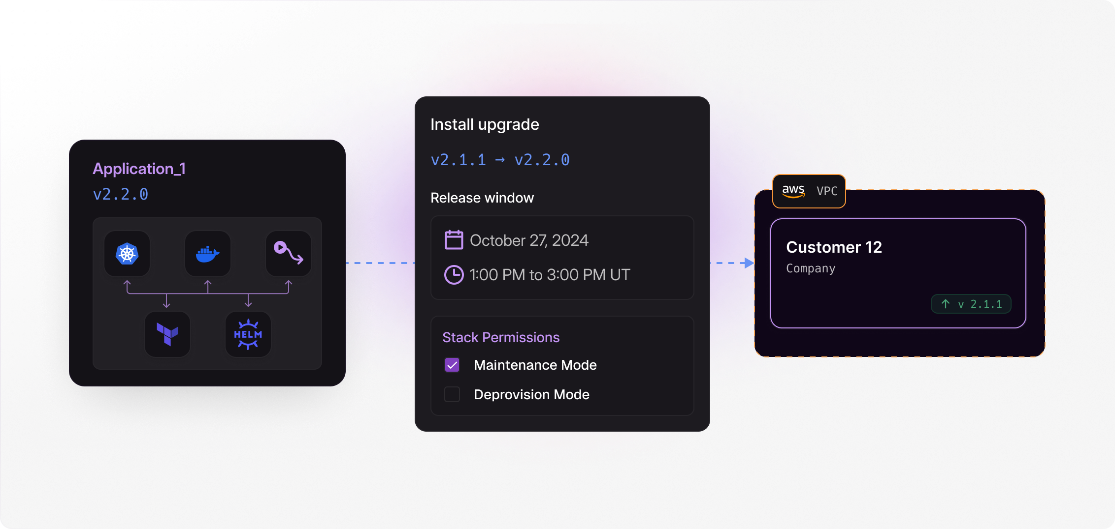 Nuon syncs container images, deploys your Infrastructure as Code, and runs setup actions automatically. Every installation follows provides workflows that include component outputs, detects drifts and checks the overall install health.
