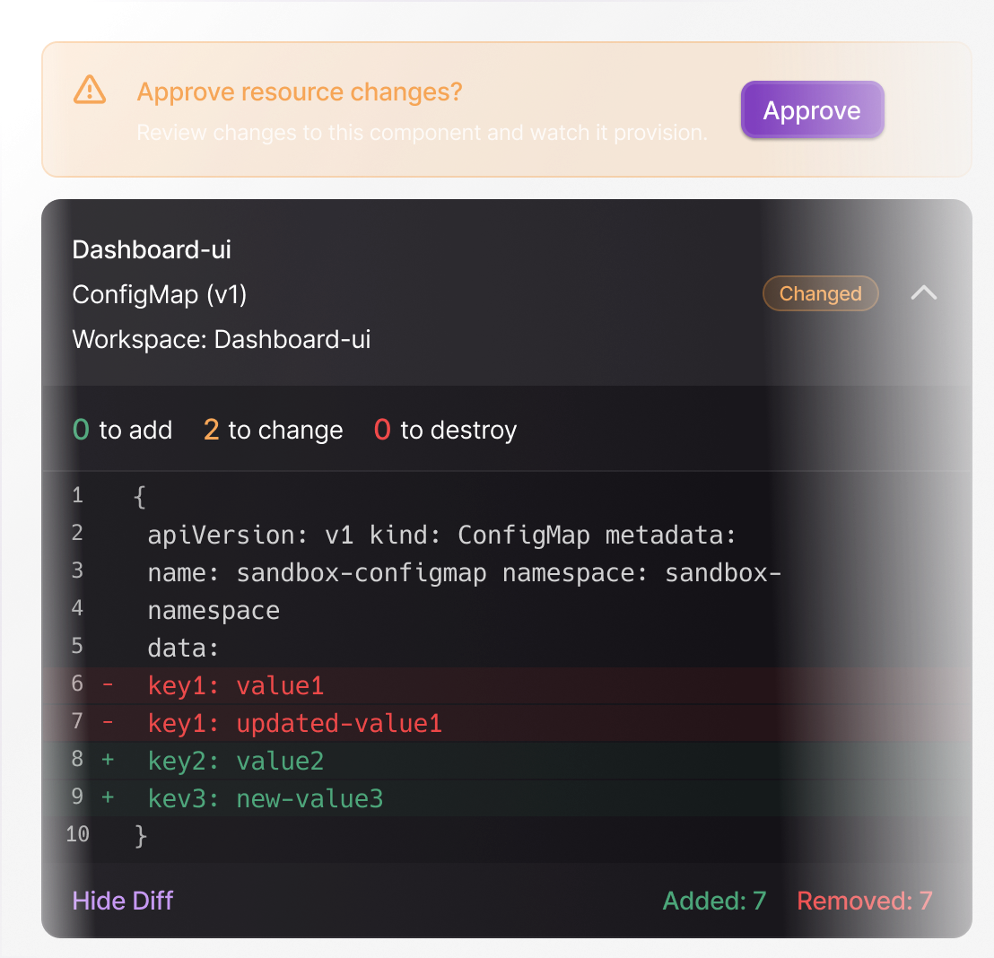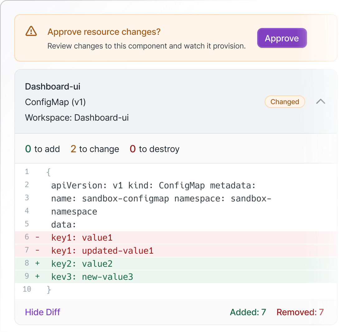 Review resources in customer environment, analyze drift, and make approval decisions.