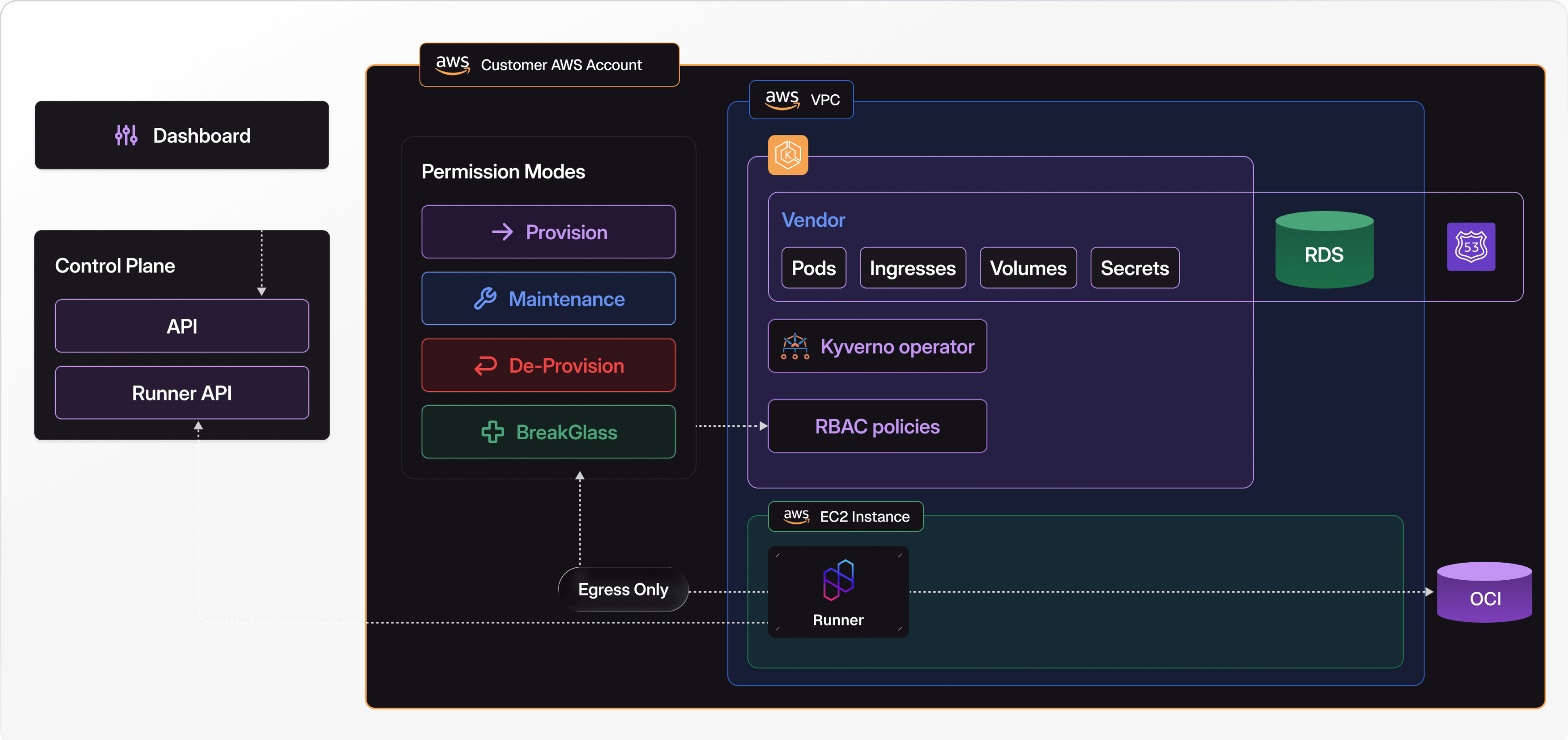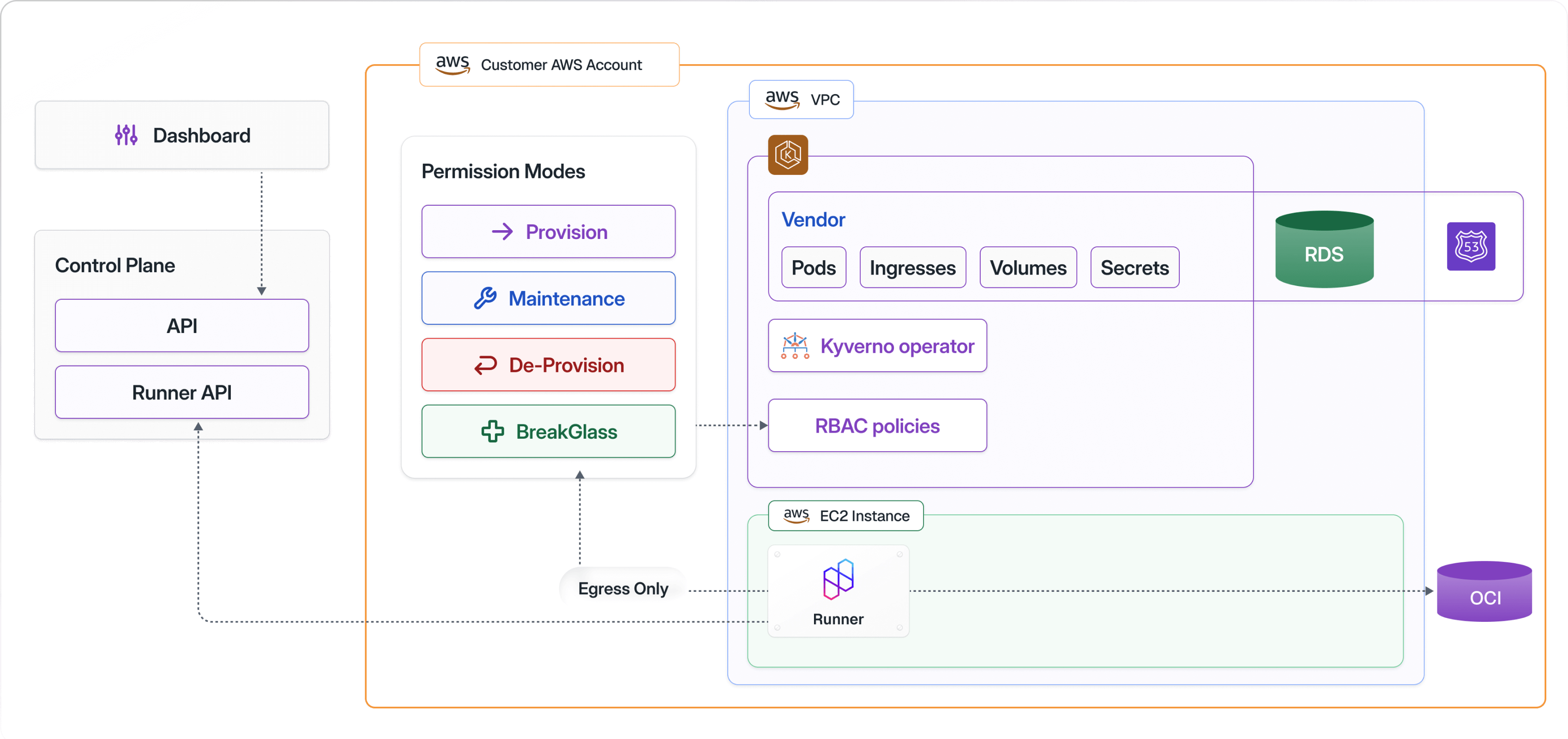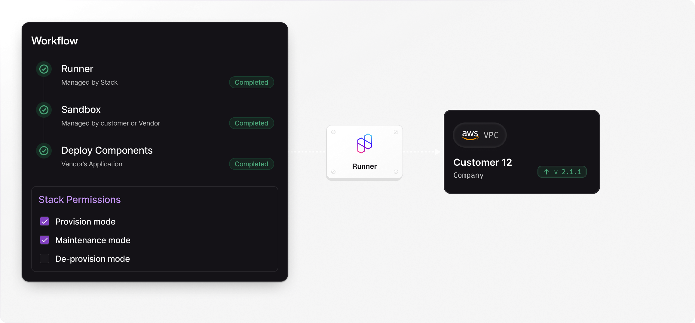 Deploy into customer environments using customer’s defined permission boundaries.