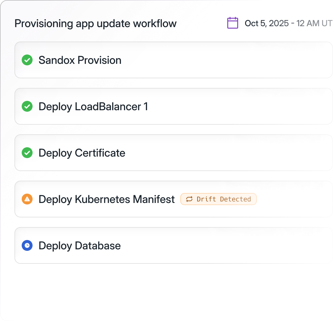 Detect and prevent configuration drift in real-time. Every deployment validated against your policies.