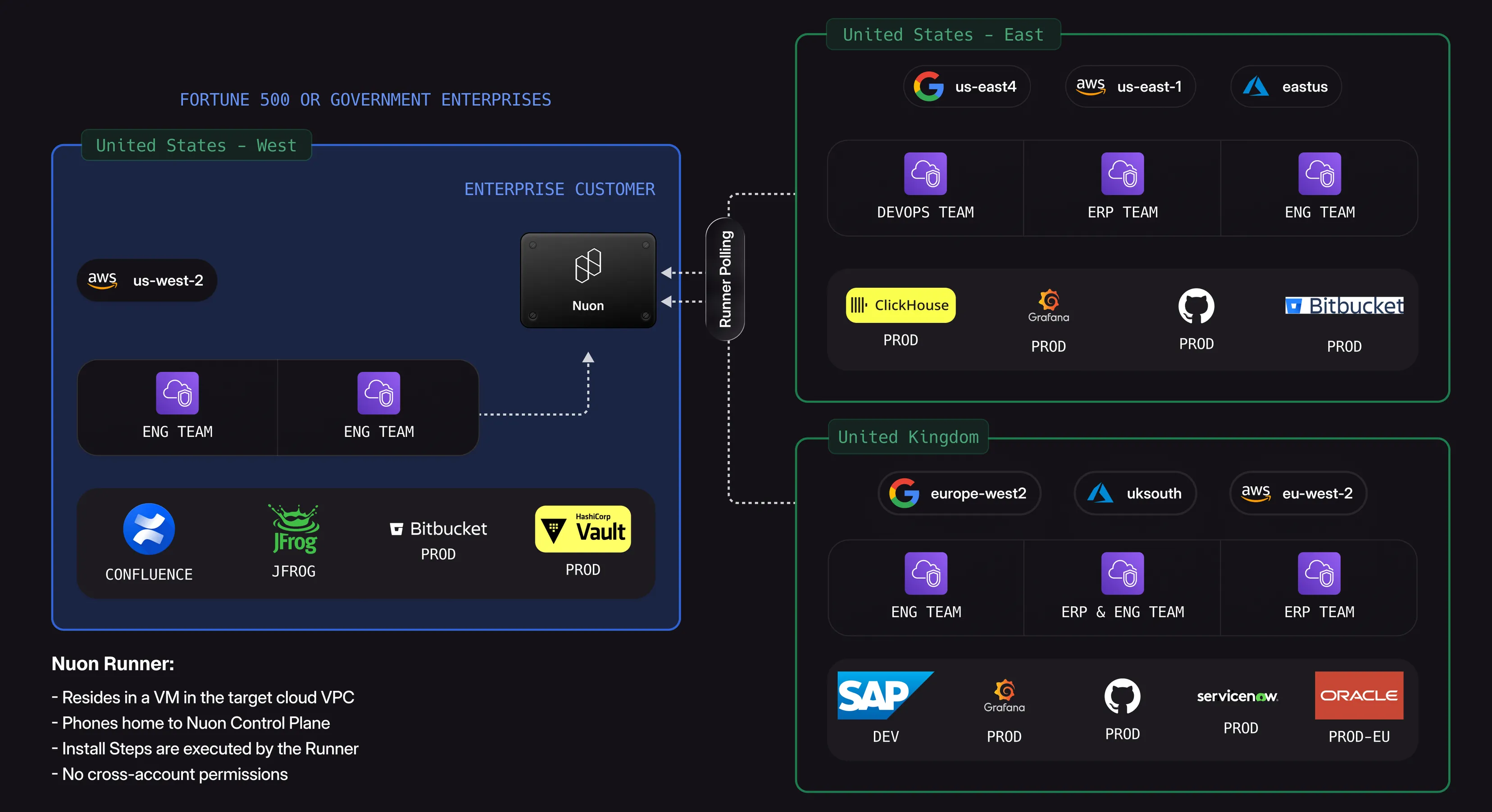 Re-use your Terraform, Helm, Kubernetes manifests and container images. Easily define your app with TOML files. Capture the entire app install lifecycle state in Nuon for reproducibility and debugging.
