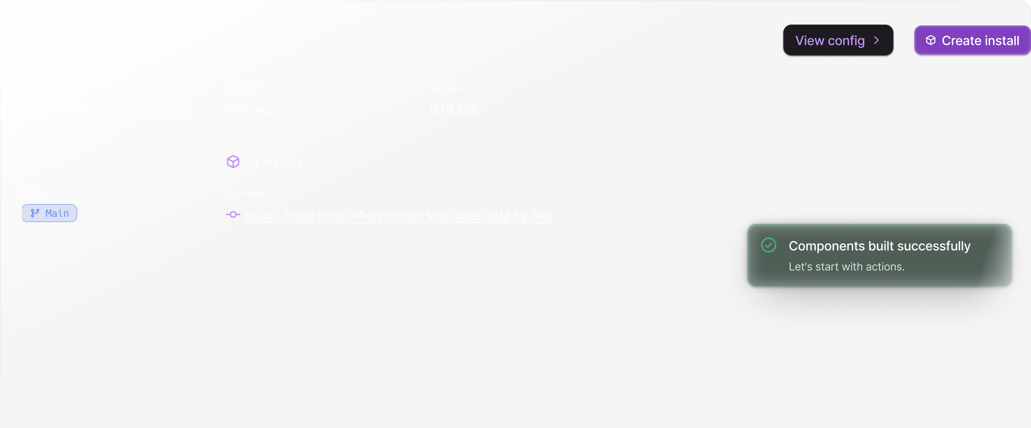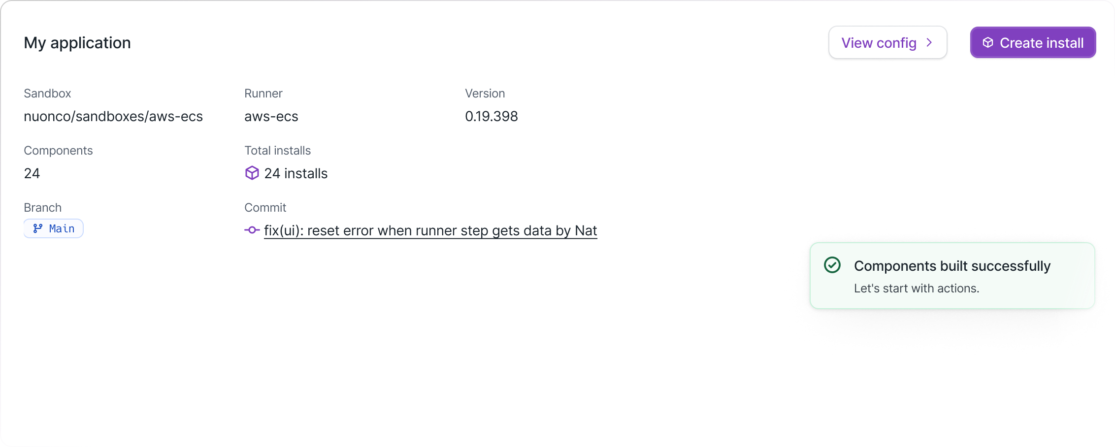 DevOps teams easily package their app's infrastructure and components into an App Config and sync to the Nuon control plane with the CLI.
