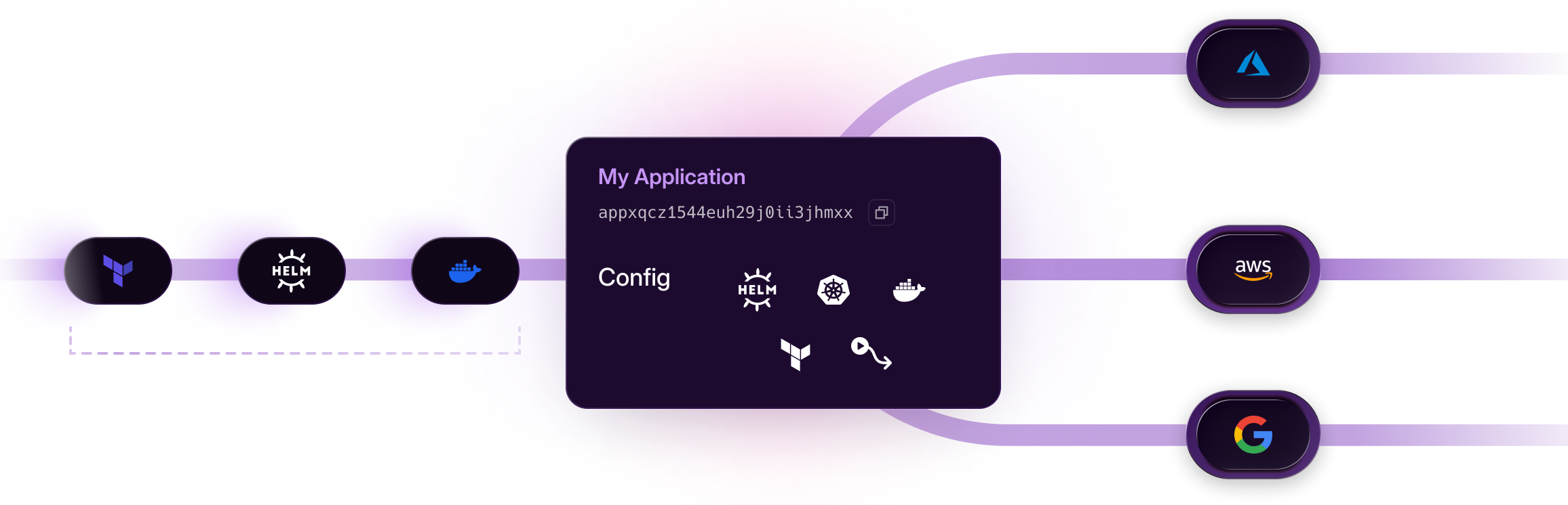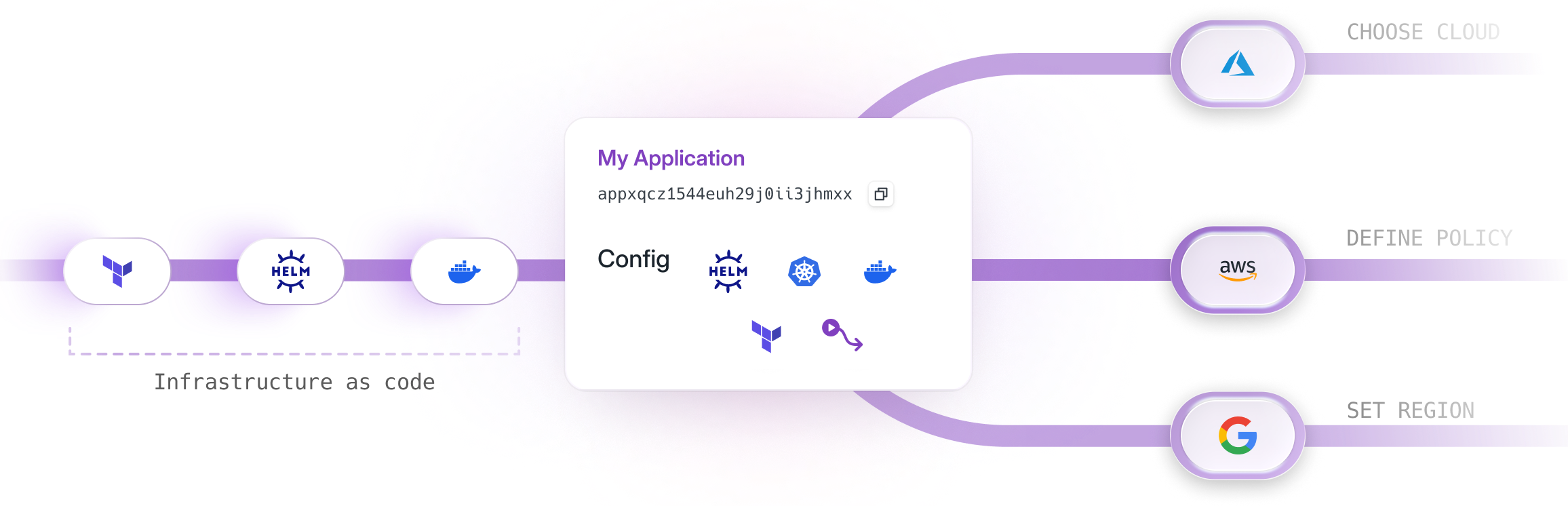 Define the App Config and reuse your git-backed components like Helm charts, Terraform modules and Kubernetes manifests.
